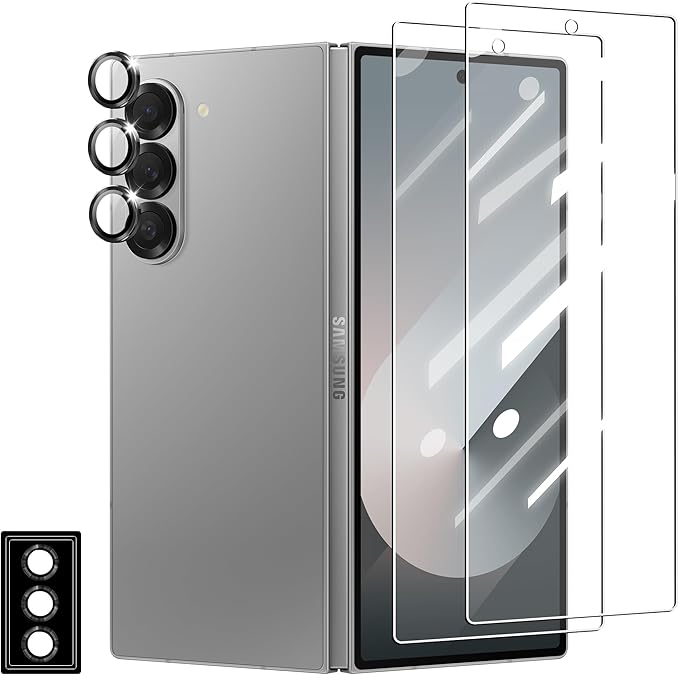 Kakuki For Galaxy Z Fold6 ガラスフィルム*2枚 + カメラフィルム*1セット ギャラクシーZ Fold6 SC-55E 保護フィルム 旭硝子素材製 指紋認証対応 耐衝撃 液晶保護フィルム 指紋防止 気泡ゼロ 自動吸着 貼り付け簡単(Galaxy Fold6)1