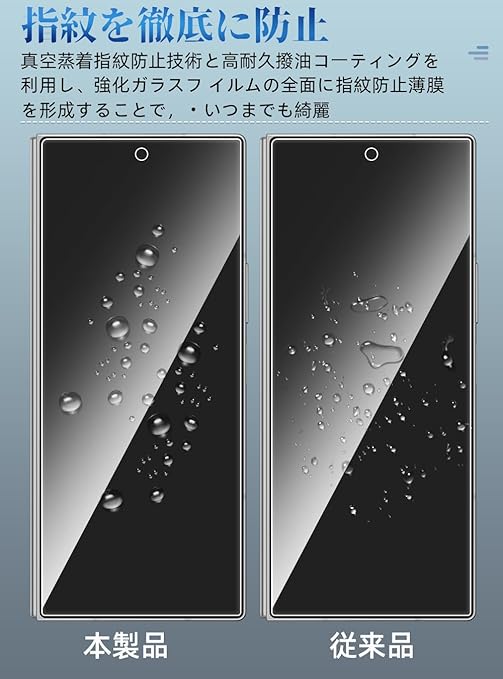 【超薄型?高感度タッチ?指紋認証対応】 Galaxy Z Fold6 SC-55E に特製ガラス保護フィルムとカメラフィルムです。高耐久性防汚のフィルムに特殊コーティングにより指紋や汚れが付きにくくなっています。超薄型保護フィルムは鮮明な99%の高透過率、自然な見た目です。 Fold6ガラス縁をラウンド加工することにより滑らかな手触りを実現。3Dラウンドエッジ加工により、横からの衝撃を受け難くします。厚さ0.2mm、何も貼っていないような感じ、手触り感が優れており画面の美しさをお楽しみいただけま