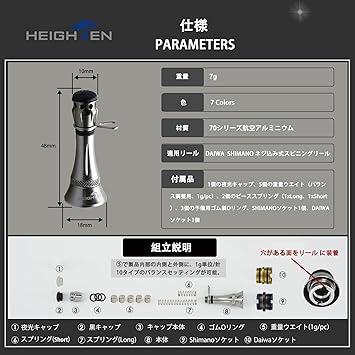 HEIGHTEN 48mm リール スタンド カスタムバランサー 夜光 シマノ(SHIMANO) ダイワ(DAIWA) スピニングリール 通用 7-12g調整 フックキーパー ラインストッパー