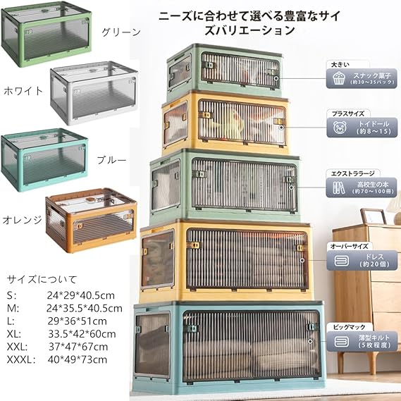GOKKNI(ゴッコニ) 折り畳み 収納ボックス コンテナー ケース 箱 キャスター付き 蓋付き 積み重ね 全方向から取り出せる 服装ケース 洋服収納 大容量 透明 コンテナ 大型 洋服 衣類 布団 おもちゃ 小物 [Lサイズ 幅51×奥行36×高さ29cm] (ホワイト, 2)