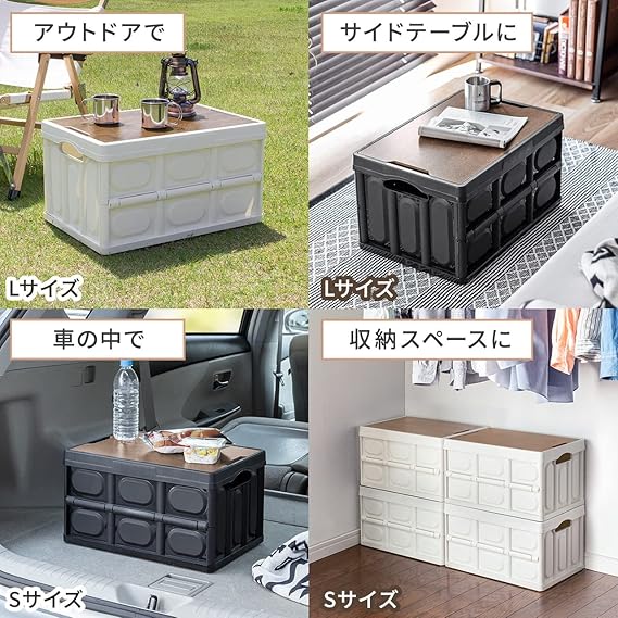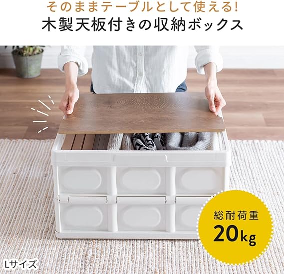 サンワダイレクト 折りたたみコンテナ 35L フタ付き キャンプ 車 収納ボックス ホワイト 100-FC001W