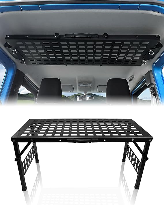 ROADER スズキ ジムニー JB64 JB74 天井ラック 収納ラック キャンプ テーブル アウトドアテーブル BBQ 折畳みテーブル トランク拡張棚 収納 荷物棚 吊り下げ収納 ラゲッジルームラック アルミ製 耐荷重40kg キャンプ用品 おしゃれ 携帯便利 ブラック ジムニー シエラ 外装パーツ 穴あけや改造が不要