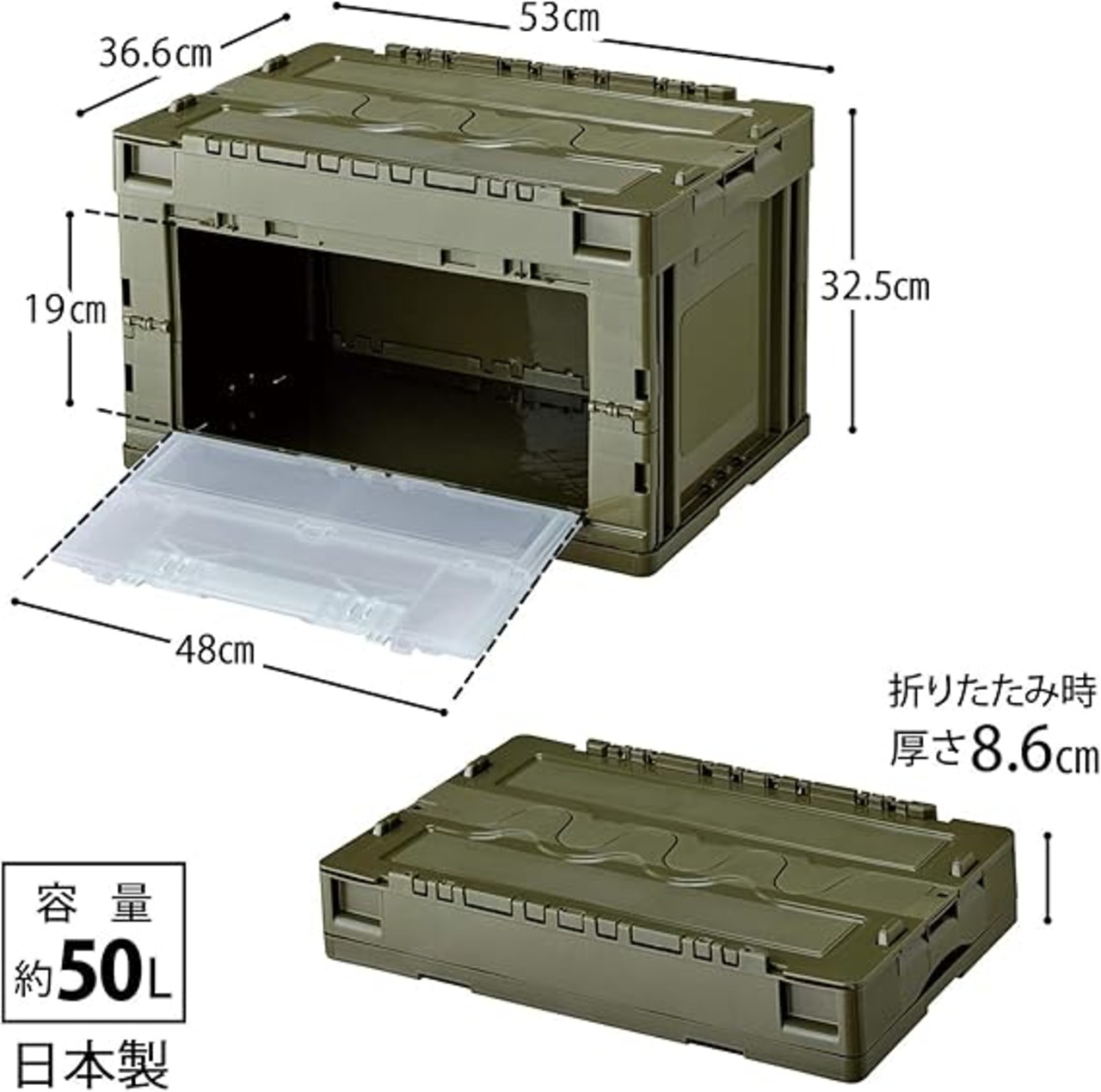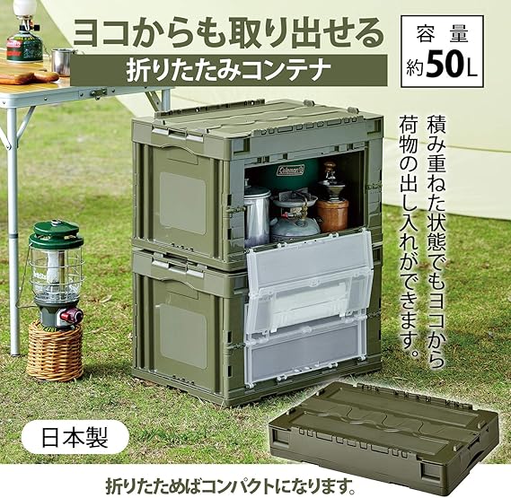 リス 収納ケース・ボックス 折りたたみコンテナ 50L 扉付 蓋付 グリーン 日本製 177487
