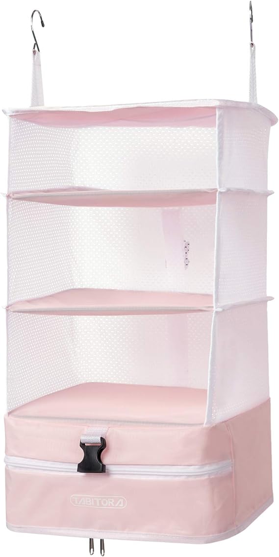TABITORA(タビトラ)収納ボックス 吊り下げ インナーバッグ 衣類ラック 収納 旅行 出張 クローゼット 省スペース 大容量 衣装ケース 4段 オーガナイザー ピンク L