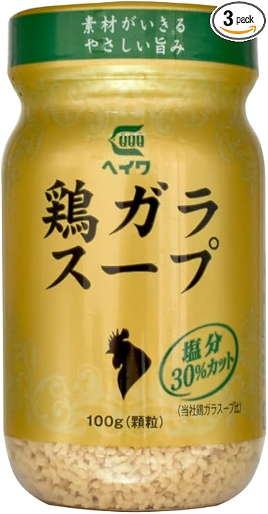 平和食品工業 鶏ガラスープ 化学調味料無添加・塩分30% カット 100g ×3個1