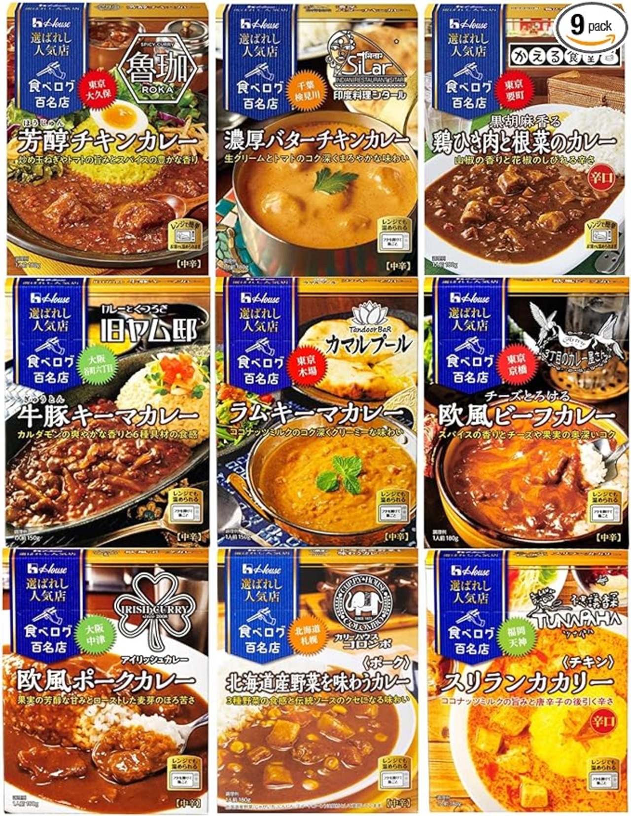 【Amazon.co.jp限定】 ハウス カレー百名店全国巡りセット 選ばれし人気店9種ストック用BOX付きセット (ラムキーマカレー、キーマカレー、バターチキン、芳醇チキン、欧風 ビーフ、黒担々、スリランカカリー、北海道産野菜ポーク、欧風ポーク) 【セット買い】 ×9個1