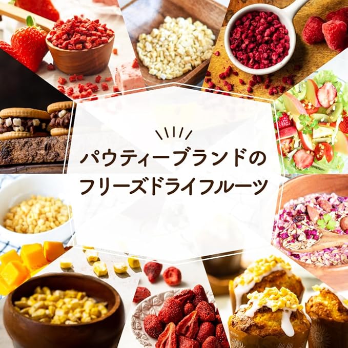 【多くのパティスリーで使用】「フリーズドライフルーツ」は、 著名なパティシエも認め、多くのパティスリーで使用されています。 ソフトクリームやバニラアイス、生クリームのトッピングや、 ヨーグルトに混ぜるとフルーツの甘味・ほのかな酸味が加わり更に美味
