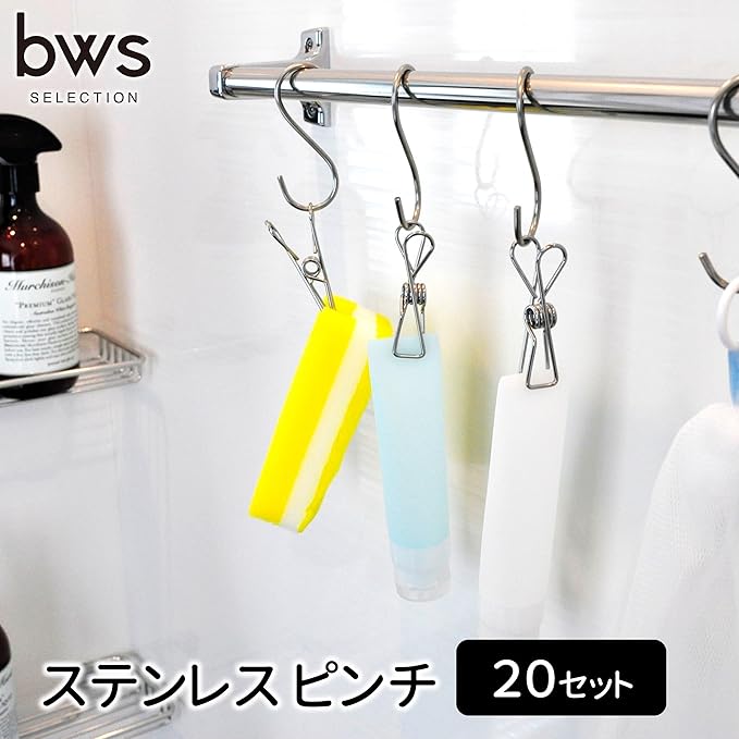 ビーワーススタイル 洗濯ばさみ ステンレス 20個 ピンチ 洗濯 調味料保存 キッチン収納 吊り下げ収納 幅6.2×奥行1.5×高さ2.6cm シルバー MM-7000741