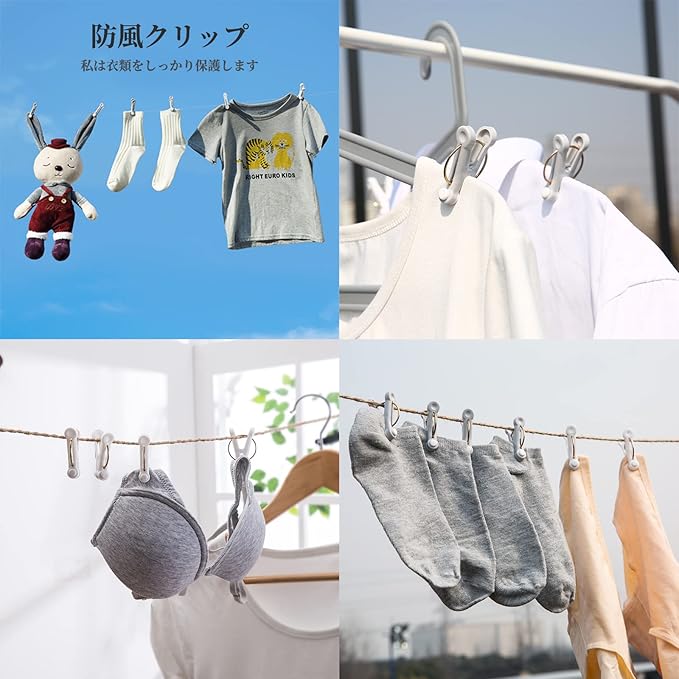 【滑り止め+ソフトグリップ】PETゴム製のやわらかいパーツは、衣服に見苦しい跡を残さず、しっかりと保持でき、洗濯ばさみは耐候性があります。