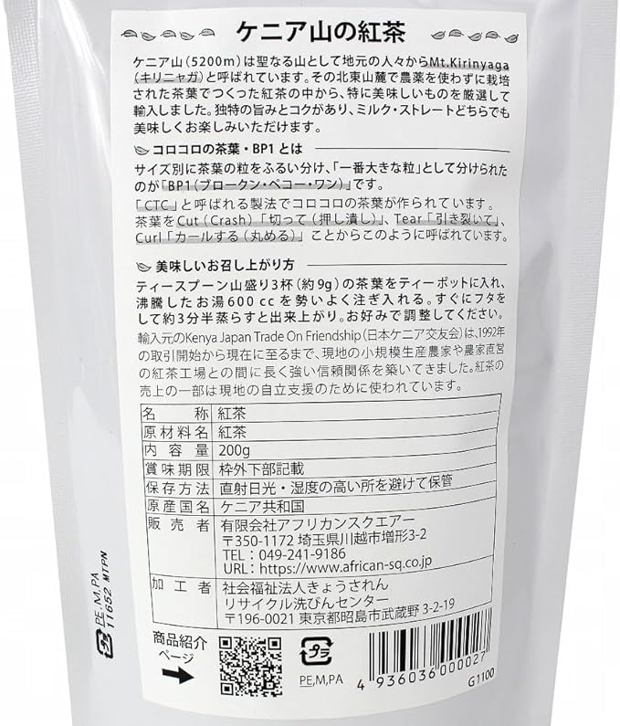 AFRICAN TABLE ケニア山の紅茶(BP1) 200g1