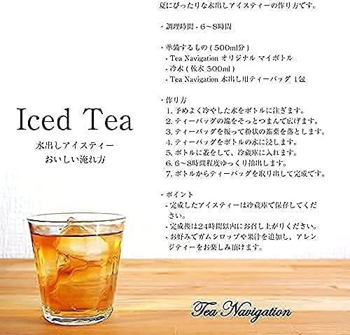 水出し紅茶は渋み・苦みが少なく、すっきりとした味わいが特徴です。 TEA NAVIGATION 水出しシリーズのティーバッグは水出し用に設計しました。 通常よりも大きな糸タグなしの三角メッシュティーバッグには、1包に5gの茶葉が入っています。 水500ccに対してティーバッグを1個入れ冷蔵庫で6時間程度抽出すれ