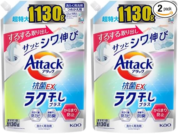 【まとめ買い】アタック抗菌EX 洗濯洗剤 液体 ラク干しプラス 詰替え用 1130g × 2個