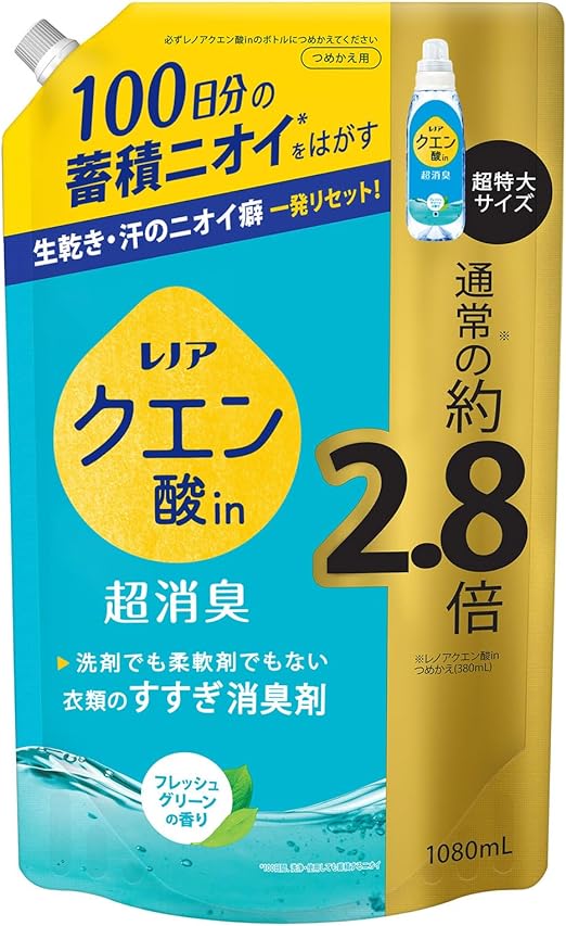 レノア 液体 クエン酸in 超消臭 すすぎ消臭剤 フレッシュグリーン 詰め替え 1080mL