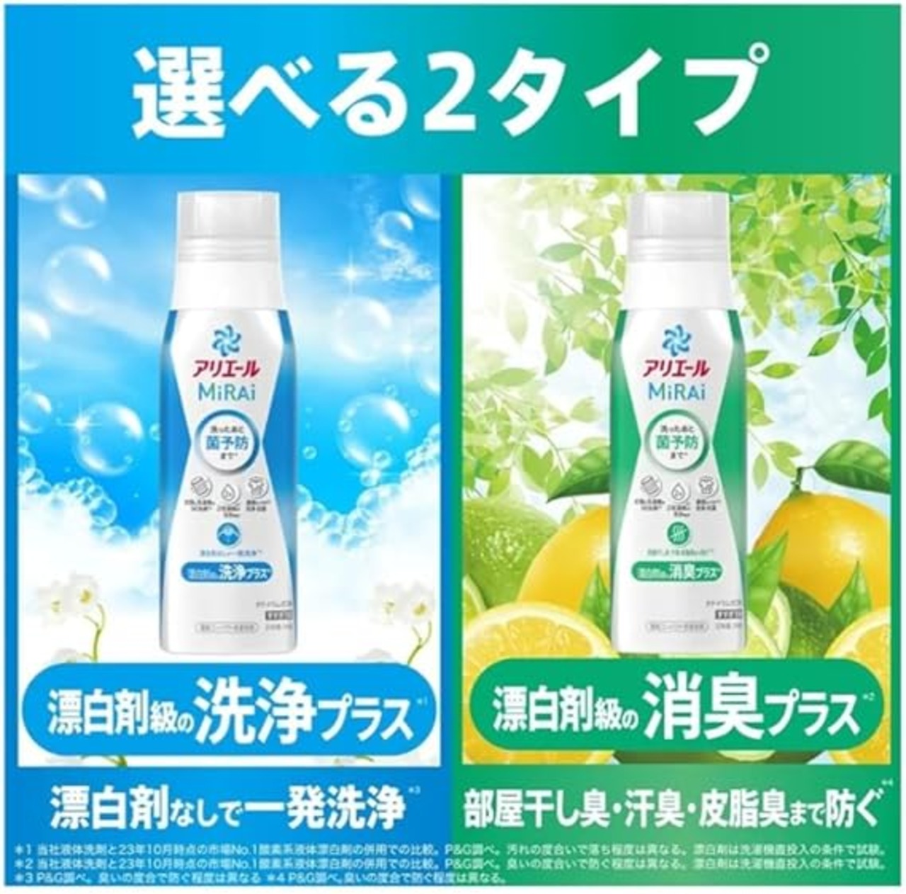 最強レベル抗菌・洗浄*3 黄ばみもすっきり。 *3 アリエール液体内で