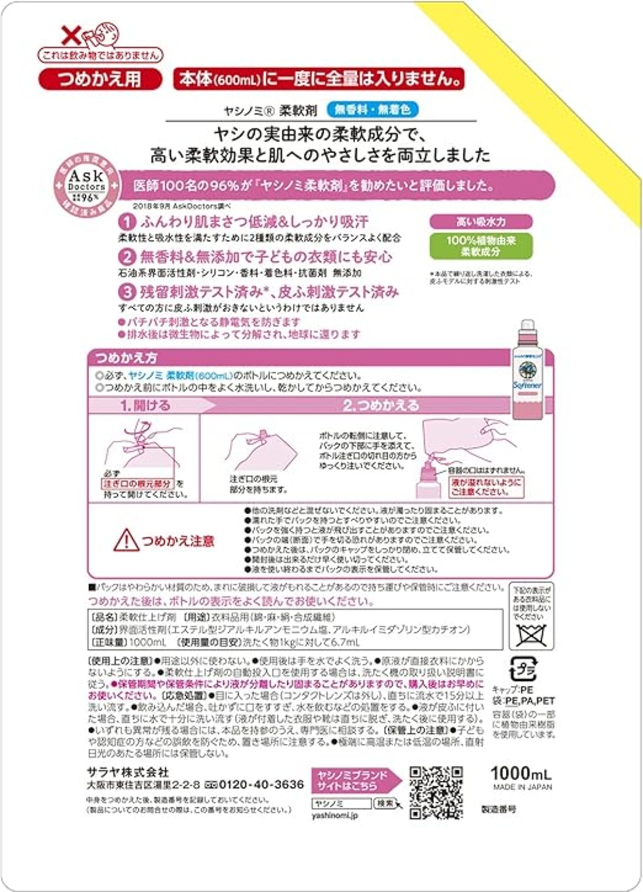 【まとめ買い】ヤシノミ 液体 柔軟剤 詰替 1000ml×2個1