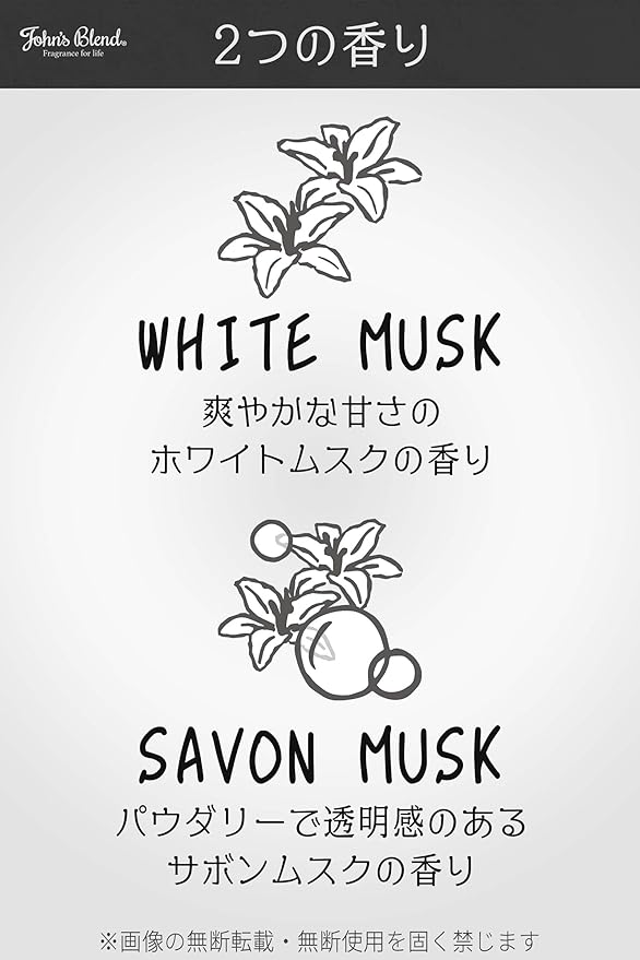 サボン系の爽やかさとホワイトフローラルのほのかな甘みがクセになるホワイトムスクの香り