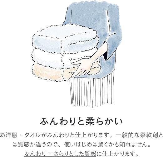 【特徴】●衣類や寝具をふんわりと仕上げる洗濯用柔軟剤です。●肌へのやさしさを考え、食品・化粧品原料のみでつくりました。敏感肌対象の肌テスト済み。※1●タオルや肌着本来の吸水性を保ちます。●植物由来の柔軟成分で環境にやさしい設計です。※すべての人の皮ふに影響がないということではありません。