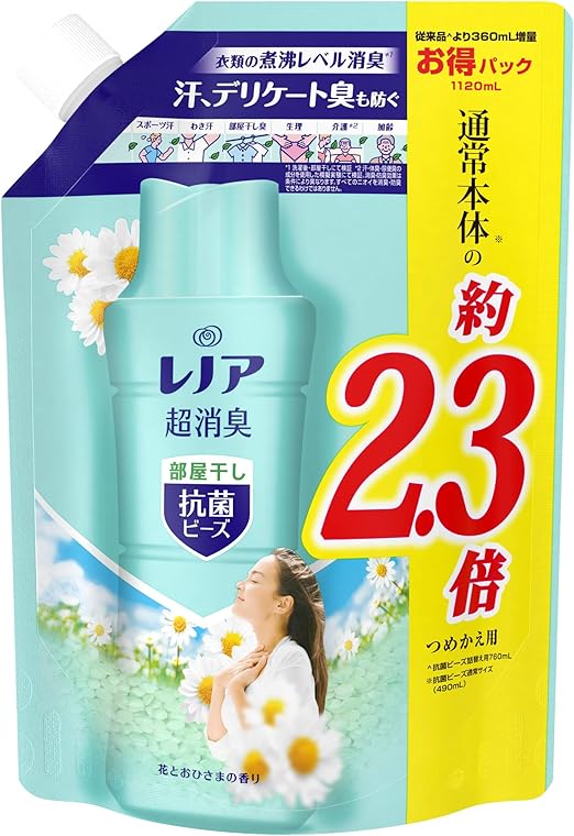 レノア超消臭抗菌ビーズ部屋干し 花とおひさまの香りつめかえ用特大 1,120mL1