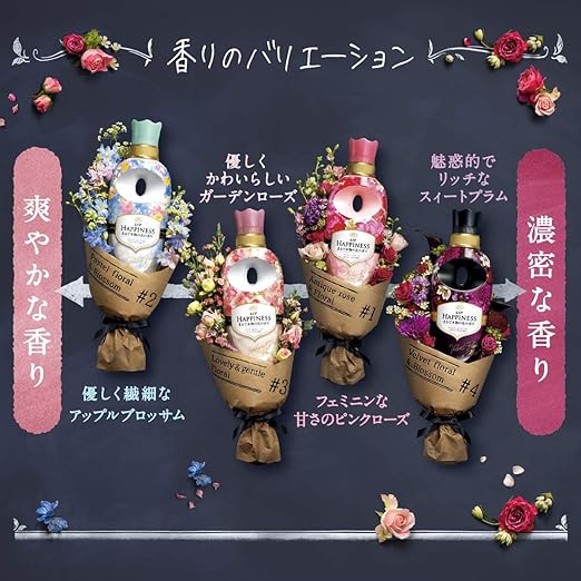 新レノアハピネス*はハピネスハーバリウムカプセル in。 香りを1日中、新鮮なまま楽しめます。(*2021年2月発売。「パステルフローラル&ブロッサム」は、パッケージデザインの変更のみ。)