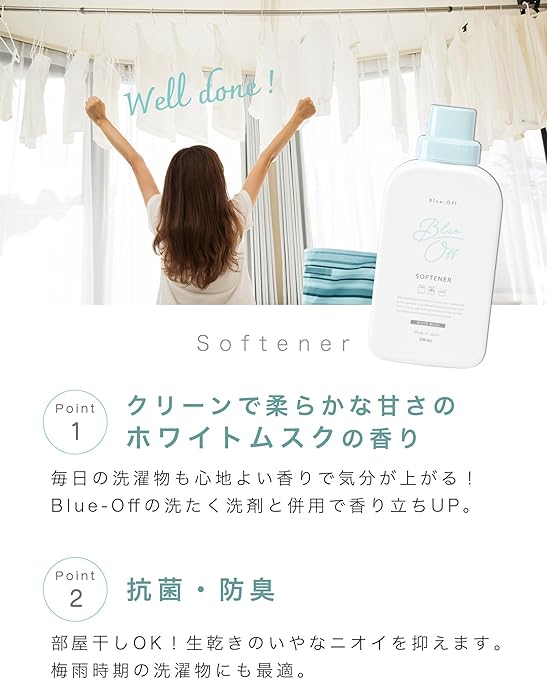 Blue-Off(ブルーオフ) 柔軟剤 ソフナー ホワイトムスク 500mL 部屋干し 抗菌 防臭 BLU-2-11