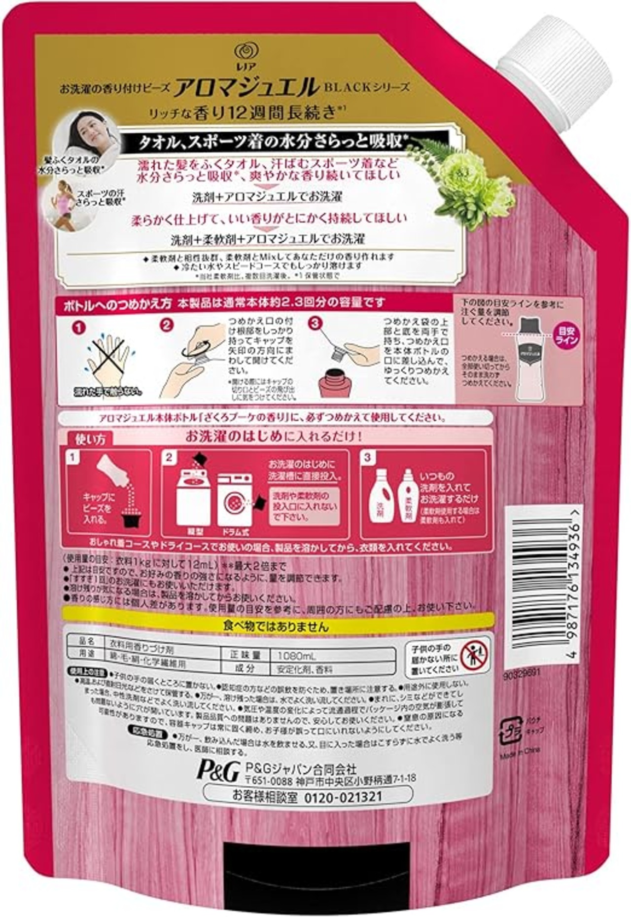 [ケース品] レノア ハピネス アロマジュエル 香り付け専用ビーズ ざくろブーケ 詰め替え 1,080mL x6袋1