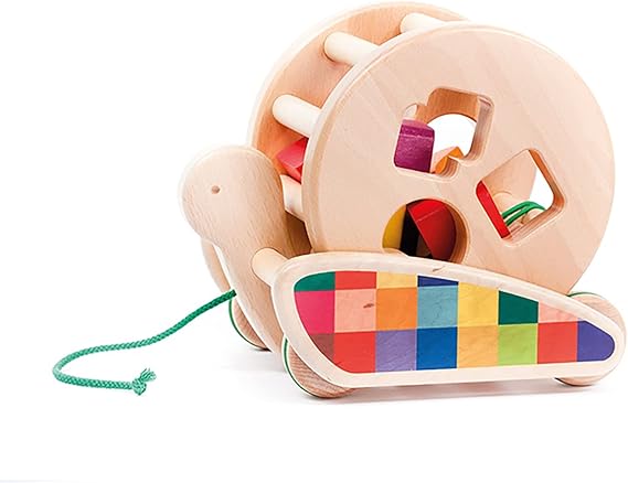 プルトーイ:ハイハイがはじまる頃には大人がひっぱるプルトーイをおいかけて、歩けるようになったら、お子さん自身でひもをひっぱって一緒にお散歩。 ※ひもはお子さまの足などに絡まないよう短めです。