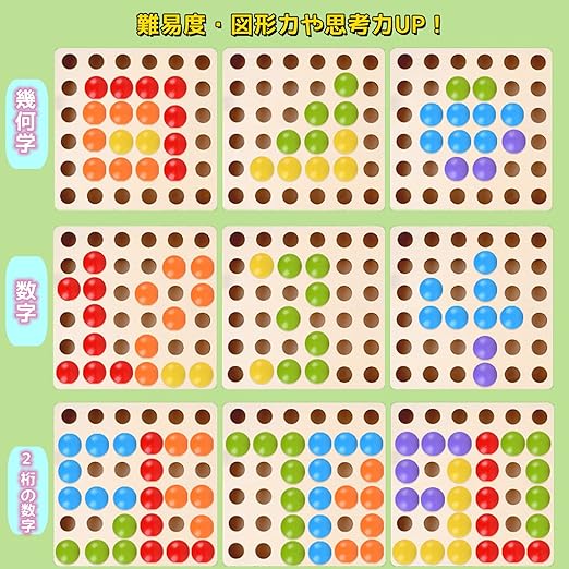 カラフルな知育玩具:色彩感覚も自然に育つよう、カラフルなおもちゃです。パズル遊びは想像力を伸ばし、自分以外への優しさや思いやりをはぐくむことができる大切なステップです。カラフルな絵、カラフルなボタンピースは頭と心を刺激し体の成長を促してくれます。