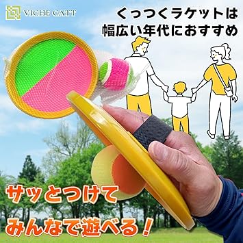 くっつくラケットはラケットを握ることが難しい方にもお勧めできるアイテムです。 これ一つ持っていれば幅広い年代の方と楽しく遊ぶことができます!
