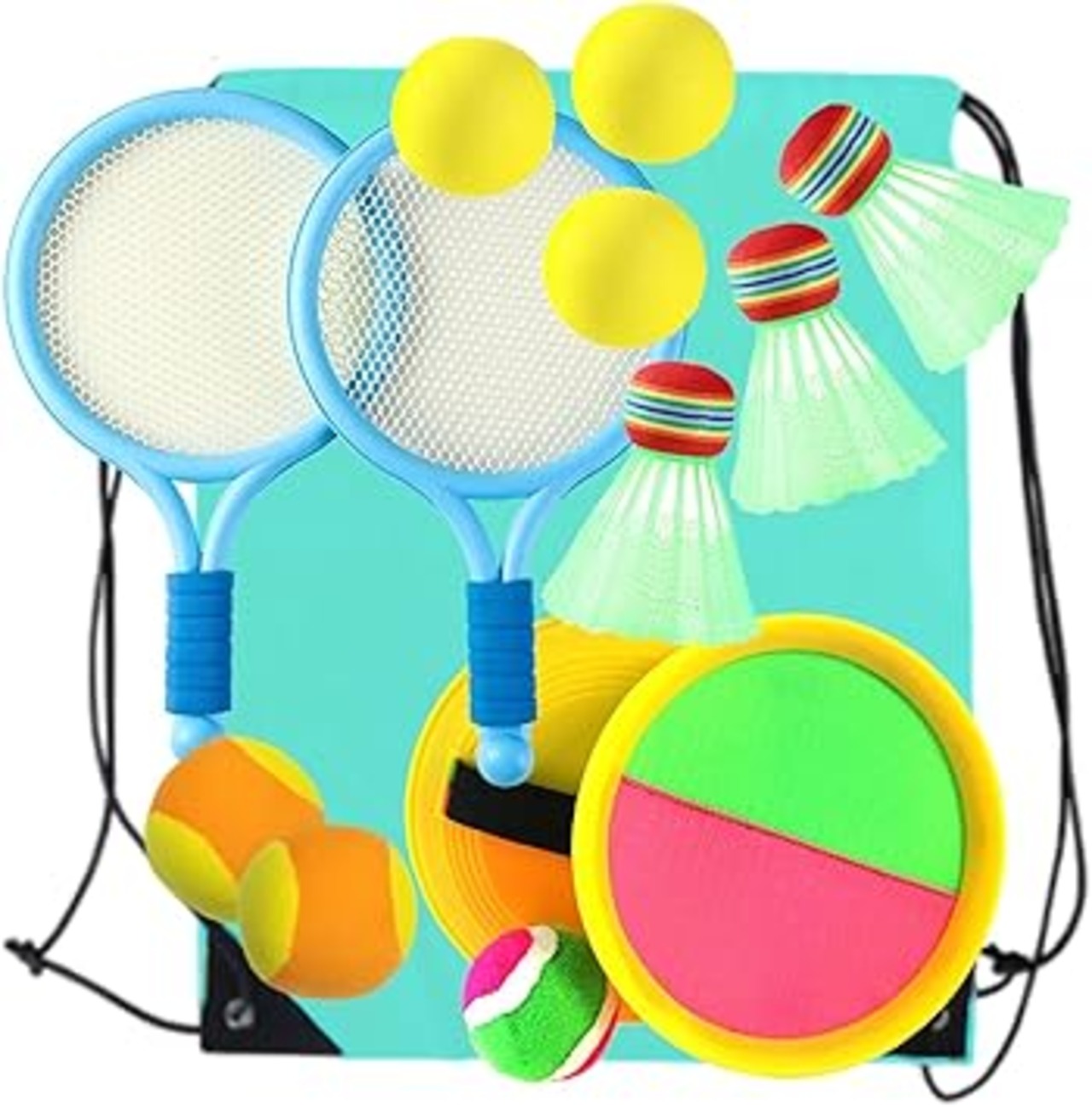 ミニバトミントン、ミニテニス、くっつくラケットなど、思い切り遊べる充実のセットです。 屋外はもちろん、室内でも遊べる!砂浜やキャンプ場などみんなで楽しめるアイテム! 収納袋もついているので、持ち運びも楽々!