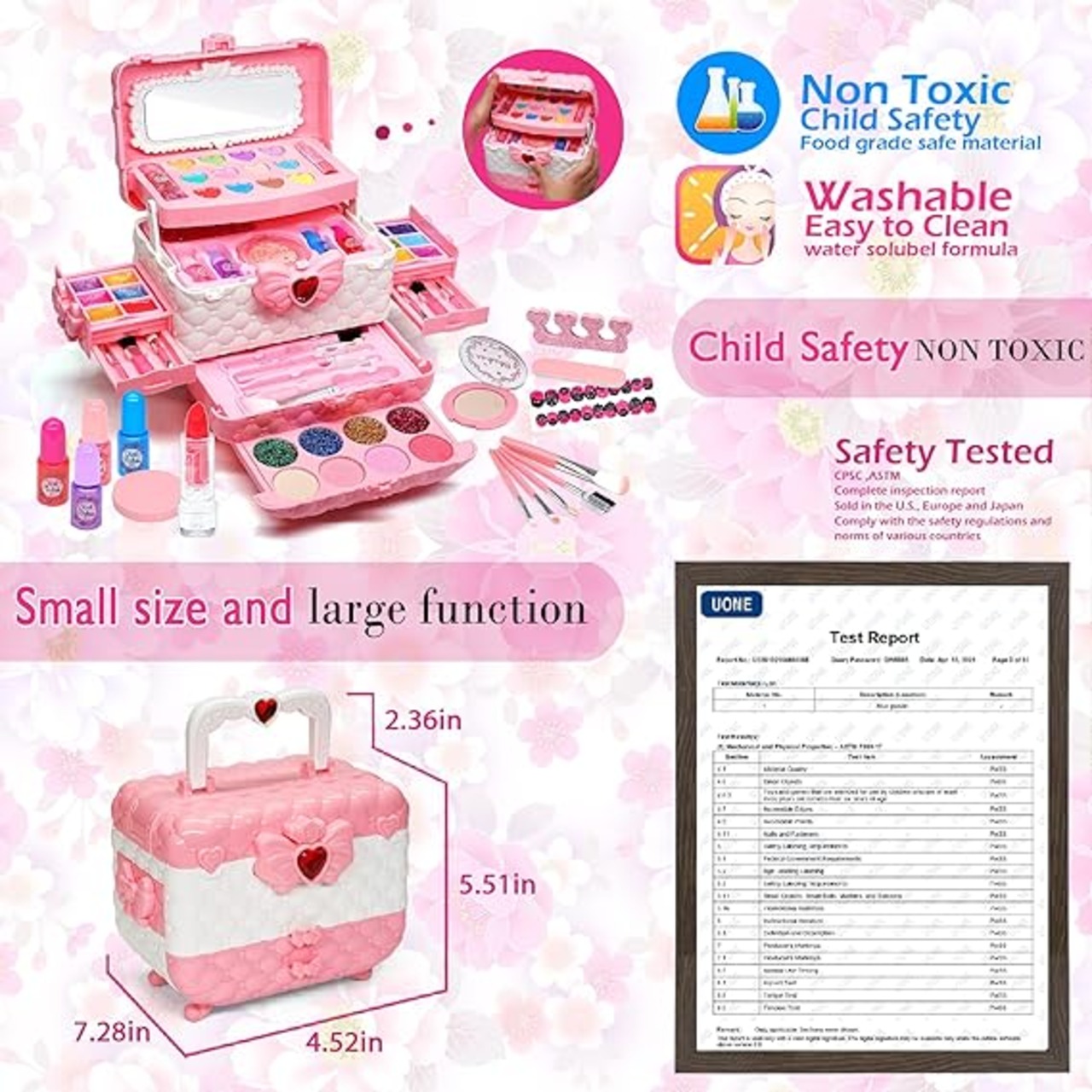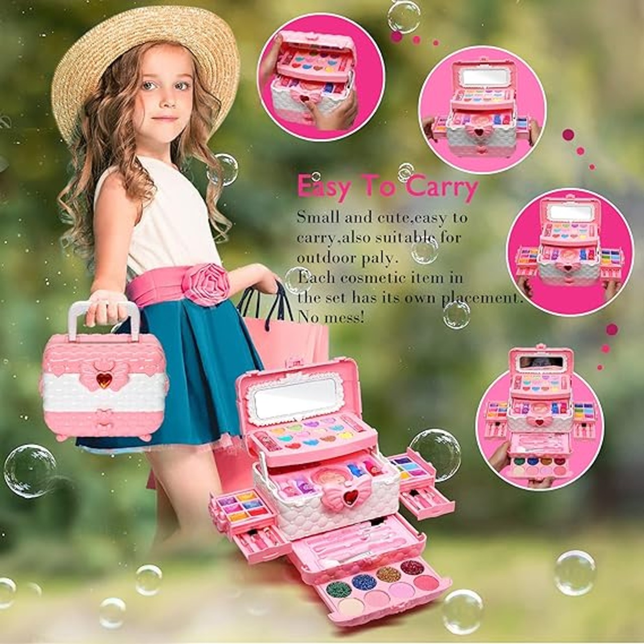 女の子用子供用メイクアップキット - キッズメイクアップキット 女の子向けおもちゃ 本物のメイクアップをプレイ 女の子用 洗えるメイクアップキット 小さな女の子向け 非毒性 幼児用 化粧品 3~12歳のお子様用 ティーン向け1