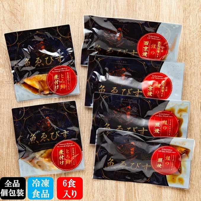 ■内容量:・とろ鯖煮付け(95g) ・鮭の西京焼(80g) ・鮭の照焼(100g) 3種各2個ずつ 合計6個