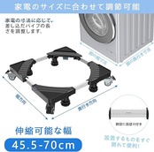 【伸縮可能・高さ調整】幅/奥行き:44.5cm~70cm、高さ調整:10.5cm~12.5cm。洗濯機や冷蔵庫など、家電のサイズに合わせて、自由に伸縮調整できます。