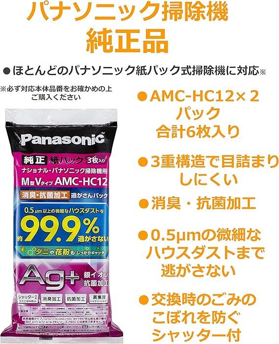【まとめ買いセット】パナソニック 交換用逃がさんパック 消臭・抗菌加工 M型Vタイプ 6枚入り AMC-HC12【フラストレーションフリーパッケージ(FFP)】1