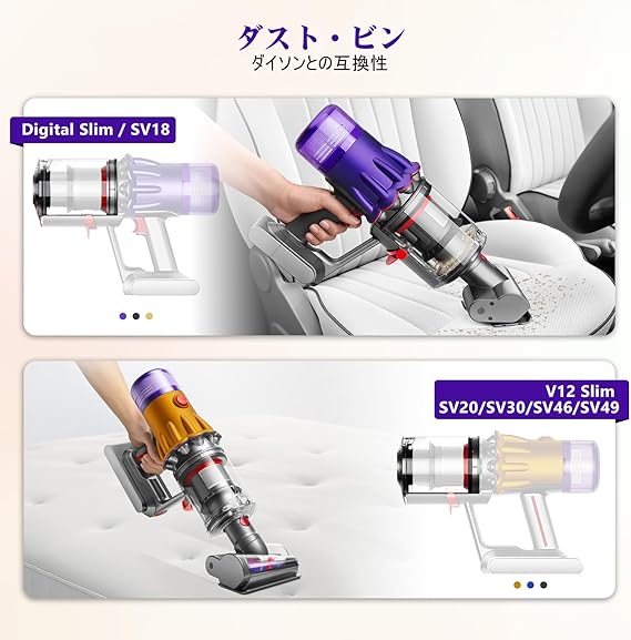 クリアビン対応ダイソン V12 SV18 SV20 Detect Slim/V10 Digital デジタルスリム 掃除機キャニスター/ダストバケット交換部品ダストカップ掃除機用リリースNo.965272-011