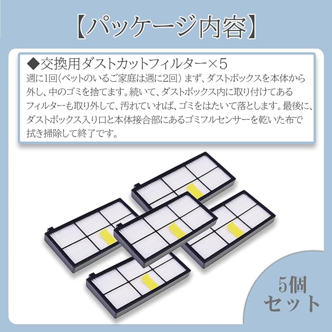 irobot ルンバ 800 / 900 シリーズ対応 用ダストカットフィルター 互換品 5個セット 4419697 に対応1