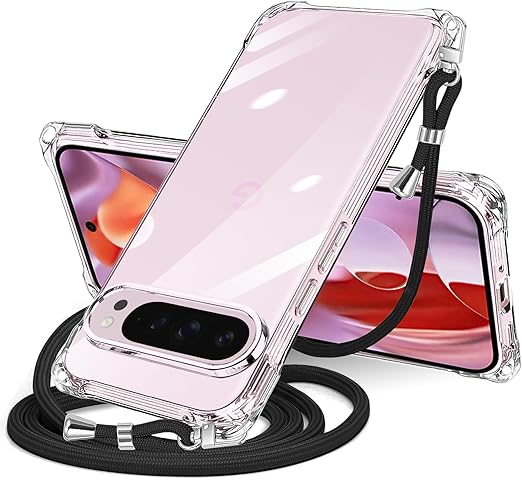 Google Pixel 9 Pro XL 用 ケース クリア ショルダー pixel9pro xl 用 スマホケース ピクセル 9ProXL カバー 肩掛け 斜めかけ 縄掛けケース 透明 薄型 軽量 TPU 携帯ケース 紐付き 斜めがけ 織りストラップ付き ネックストラップ ショルダー ケース 縦/横 2WAY 長さ調整可能 取り外し可能 落下防止 紛失防止 ワイヤレス充電対応 (クリア)1
