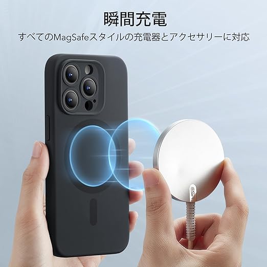 ESR for iPhone 15 Pro ケース MagSafe付き マグネット充電対応 スリム シリコンケース 衝撃吸収 画面とカメラ保護 Cloudシリーズ ブラック1