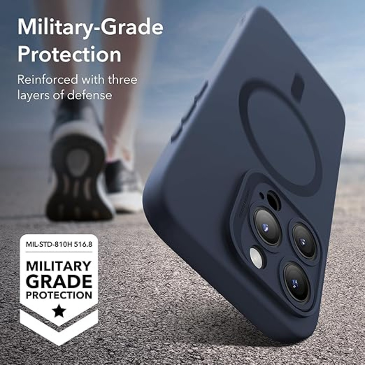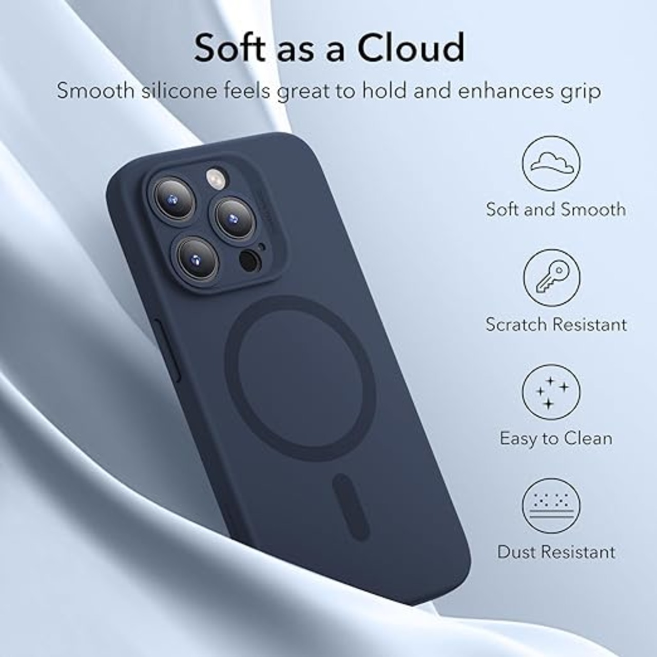 ESR for iPhone 15 Pro ケース MagSafe付き マグネット充電対応 スリム シリコンケース 衝撃吸収 画面とカメラ保護 Cloudシリーズ ブルー1
