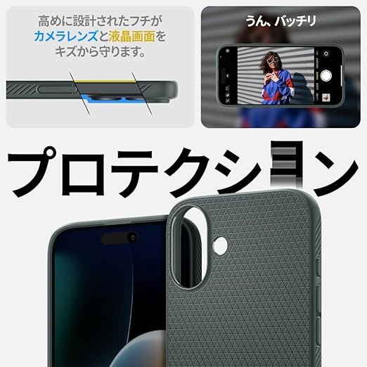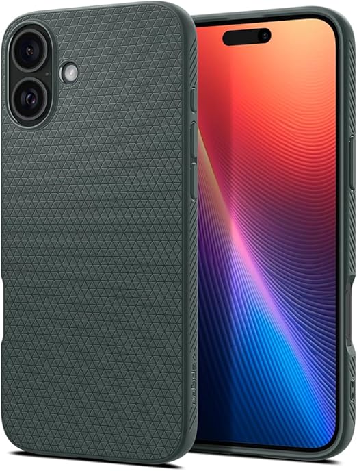 Spigen iPhone 16 ケース TPU ソフト 耐衝撃 ストラップホール 米軍MIL規格 リキッド・エア ACS08196 (アビス・グリーン)1