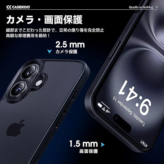 【米軍MIL規格・指紋防止】CASEKOO iPhone 16 用 ケース 耐衝撃 滑り止め 指紋防止 米軍MIL規格 マット仕上げ ストラップホール付き 黄変防止 耐久性 カバー ワイヤレス充電対応 アイフォン 16 用 6.1 インチ ケース(マットブラック)1