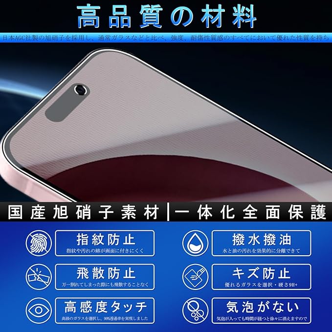YWXTW 対応 iPhone16 ガラスフイルム 覗き見防止 【2枚セット AGC旭硝子 ガイド枠付き 】対応 iPhone16 フイルム のぞき見防止(2枚) 対応 アイフォン16 保護フィルム のぞき見 プライバシーフィルム 強化ガラス 【 硬度9H 耐衝撃 飛散防止 厚さ0.26mm 気泡ゼロ 3D Touch対応 高感度 指紋防止 ラウンドエッジ加工 】 (対応 iPhone16)1