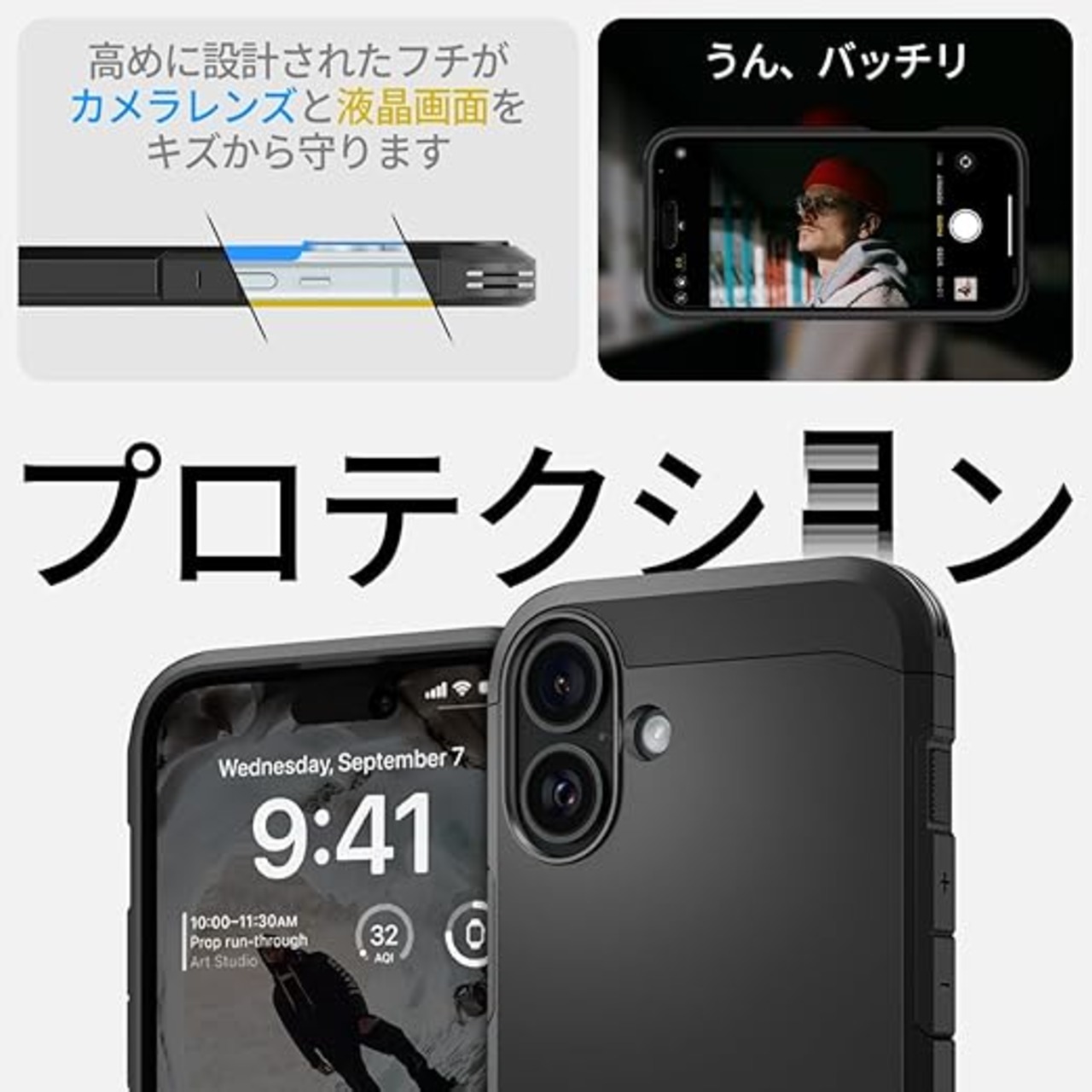 Spigen iPhone 16 ケース MagSafe対応 耐衝撃 マット 2重構造 米軍MIL規格 タフ・アーマー(AI)・マグフィット ACS08216 (ブラック)1