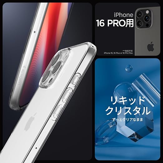 【17年社歴の技術力】Spigen iPhone 16 Pro ケース クリア 透明 TPU ソフト バンパー 耐衝撃 米軍MIL規格 リキッド・クリスタル ACS07984 (クリスタル・クリア)1