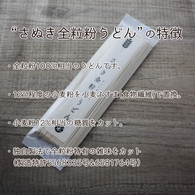 自然な糖質カットと十分な食物繊維の摂取が可能です。原料として小麦粉の12%程度を小麦ふすま(食物繊維)に置き換えた全粒粉100%タイプを使用し、1食(100g)当たり9.9gの食物繊維を含んでいます。食物繊維の1日目標摂取量は20g以上ですが、現代人の平均は15g以下です(厚労省資料)。よって全粒粉うどん1食(100g)で不足分を補うことが可能です。