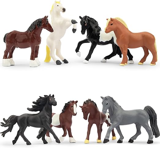 新型ミニ馬フィギュア登場:以前、馬は農耕、運搬、競馬、食用など幅広い利用が可能な家畜であります。現在、馬に利用はますます少なくなりました。でも、多くの人が馬が好きで、模型を買って家に置いています。この馬フィギュアは人々を満足させることができます。姿勢が違う12匹からなっています。この馬フィギュアはほかの馬フィギュアより小さいです。サイズは4.7CM〜7CMです。