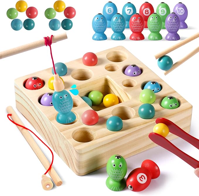 モンテッソーリ玩具 女の子 男の子 モンテッソーリおもちゃ 3 in 1 魚釣りゲーム 明るい色の木製魚釣り玩具 玩具女の子用 子供 おもちゃ 磁石玩具 子供に 玩具 玩具収納 マグネット 女の子玩具 木製ビーズ 誕生日プレゼント Fajiabao1