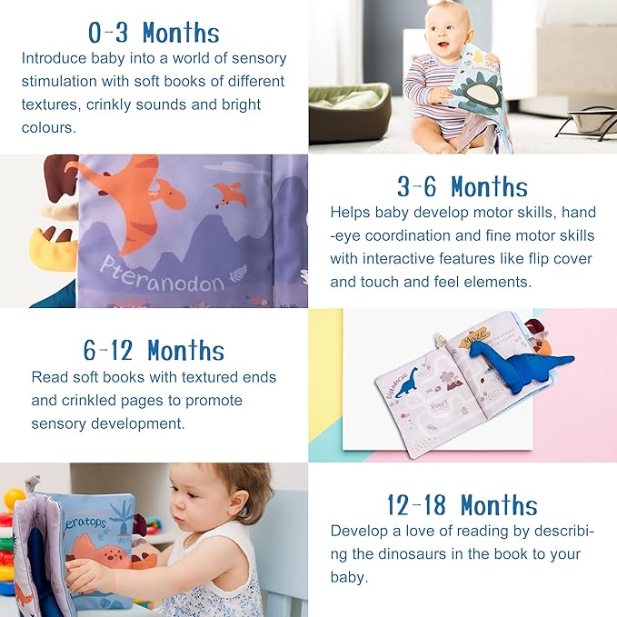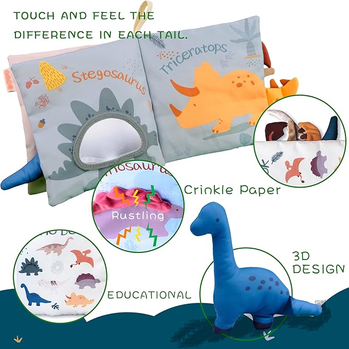 安全でソフト:取り外し可能な恐竜、鏡、音,各ページには、異なるテクスチャの恐竜の尾があります,Richgvンパクト布の絵本は持ち手があってオリジナルの本とは異なり、子供にとって完全に安全で、剥がれたり、色あせたり、ボールを生成したりしません,布絵本キッズブックは無毒の布地でできており、人気の絵本 赤ちゃんランキング,赤ちゃんが水や壊れにくく、長寿命です,赤ちゃん おもちゃ,布絵本,とってもキュートでしい商品です,クリスマスプレゼント,子供が毎日ぶら下がっていても、裂けることはありません,耐久性可