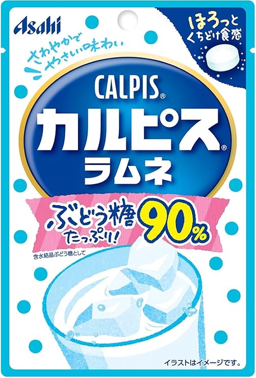 原材料:含水結晶ぶどう糖(国内製造)、でん粉、殺菌乳酸菌飲料(乳成分を含む)、水飴/ショ糖エステル、甘味料(ソルビトール、スクラロース)、酸味料、香料