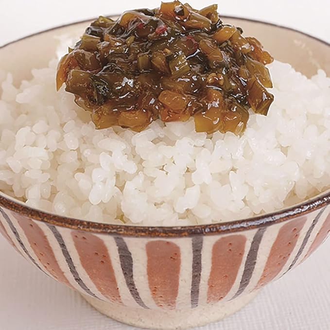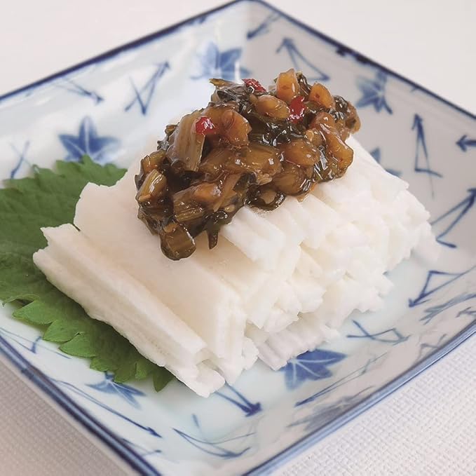 秋田名物「いぶりがっこ」の刻みと野沢菜をミックスしたご飯のお供です。