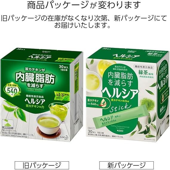 [機能性表示食品] ヘルシア 茶カテキンの力 緑茶風味 スティック 【15日分(1日2本)】 (内臓脂肪が気になる方に) 30本 3グラム1